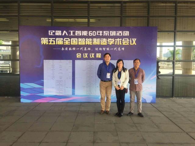 会上广东工业大学董事长陈新教授、华南理工大学张宪民教授及香港城市大学李涵雄教授等多位高校和企业专家做了大会报告,介绍了智能制造技术在电子产业等领域中的应用案例。会议组委会根据“数字化装备与智能制造,机器人与智能控制,智能检测、感知与决策系统“三个主题,安排了会议论文作者代表的报告交流环节,并评选出了优秀会议论文。公司教师鲍劲松、郑小虎的论文获优秀论文三等奖。