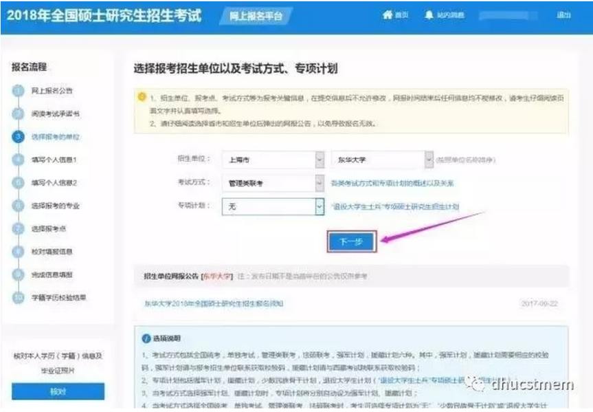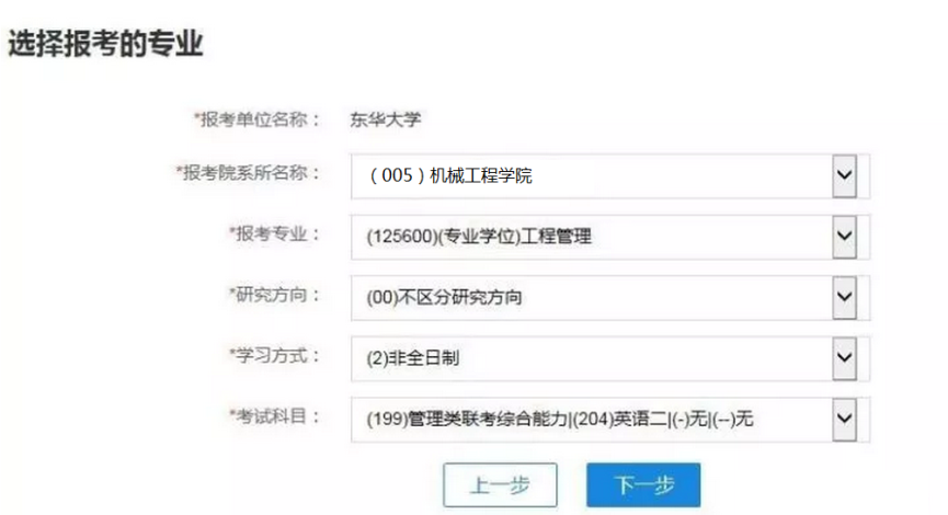 Tip.BB贝博艾弗森报考院系代码都为“005BB贝博艾弗森”。以工程管理硕士(MEM)为例,见下图所示:
