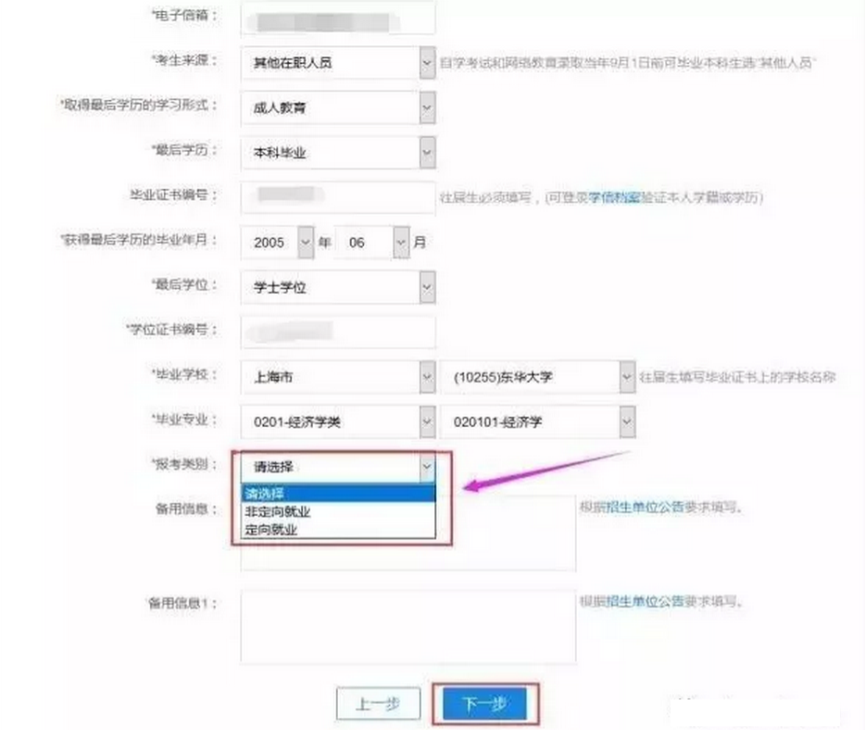 Tip:报考BB贝博艾弗森非全日制研究生的培养方式均选择“定向就业”。填写这么多个人信息可要有耐心哦!