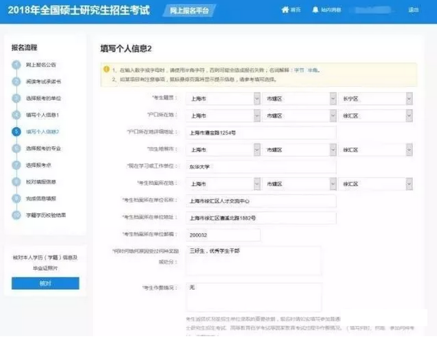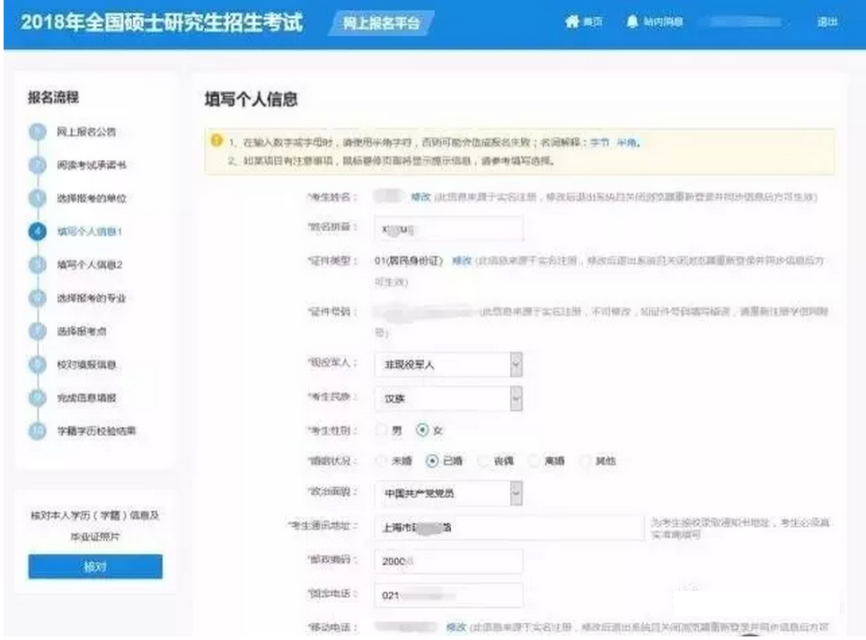 Tip:校对填报信息时请各位考生主要核对姓名和身份证号无误!