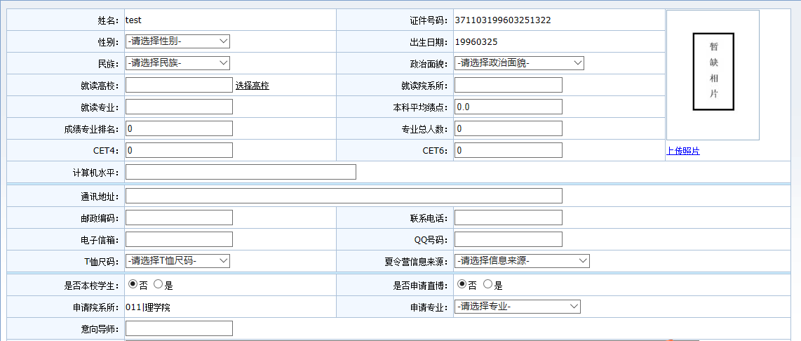 六、填写相关正确信息后,在最下方点击上传申请材料。