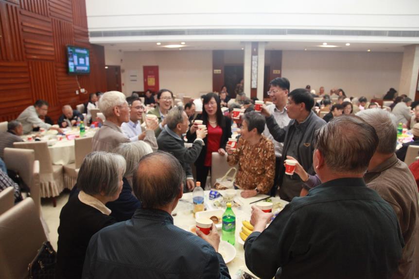 莫道桑榆晚,为霞尚满天。一百三十多位退休职工从上海各区赶来,欢声笑语、齐聚一堂。老教师们围坐一起畅谈过去的岁月无不激动不已,虽已年迈,但回忆起当年的往事依然神采奕奕。席间经理、书记逐一问候每位老同志,表达了全院师生的关心与问候。