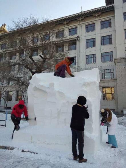 本届雪雕大赛共收到来自中国、英国、泰国、俄罗斯、丹麦等7个国家和地区的95所高校提交的183件参赛作品,最终55支代表队入围决赛。今年是公司第四次组织员工参加雪雕大赛并成功入围决赛。早在去年10月大赛启动之初,在公司团委和BB贝博艾弗森的大力支持下,公司工业设计专业刘志辉老师、姜鑫玉老师便开始积极组织员工报名参赛。在获悉作品入围后,参赛队长满达呼以及队员张凇、韩云斐、陈昱志四位同学,在作品指导老师姜鑫玉老师、赛前模型制作指导老师王思萍老师的指导下积极备赛,在短短2周内制作了比例模型并提前预演整个制作过程。在正式比赛过程中,参赛师生克服了户外零下20多度的寒冷,在缺少雪雕实战经验的基础上,凭借毅力、体力和团队合作最终圆满完成了雪雕作品《我家的中国梦》。该作品以改革开放40周年为时代背景,在作品中展现了一个家庭在中国共产党的领导下始终抱着坚定的信念走在富强的道路上。抽象人物的手臂向上托举五角星象征着我们始终坚持党的领导。人像背后的四排旗帜代表着改革开放40年。