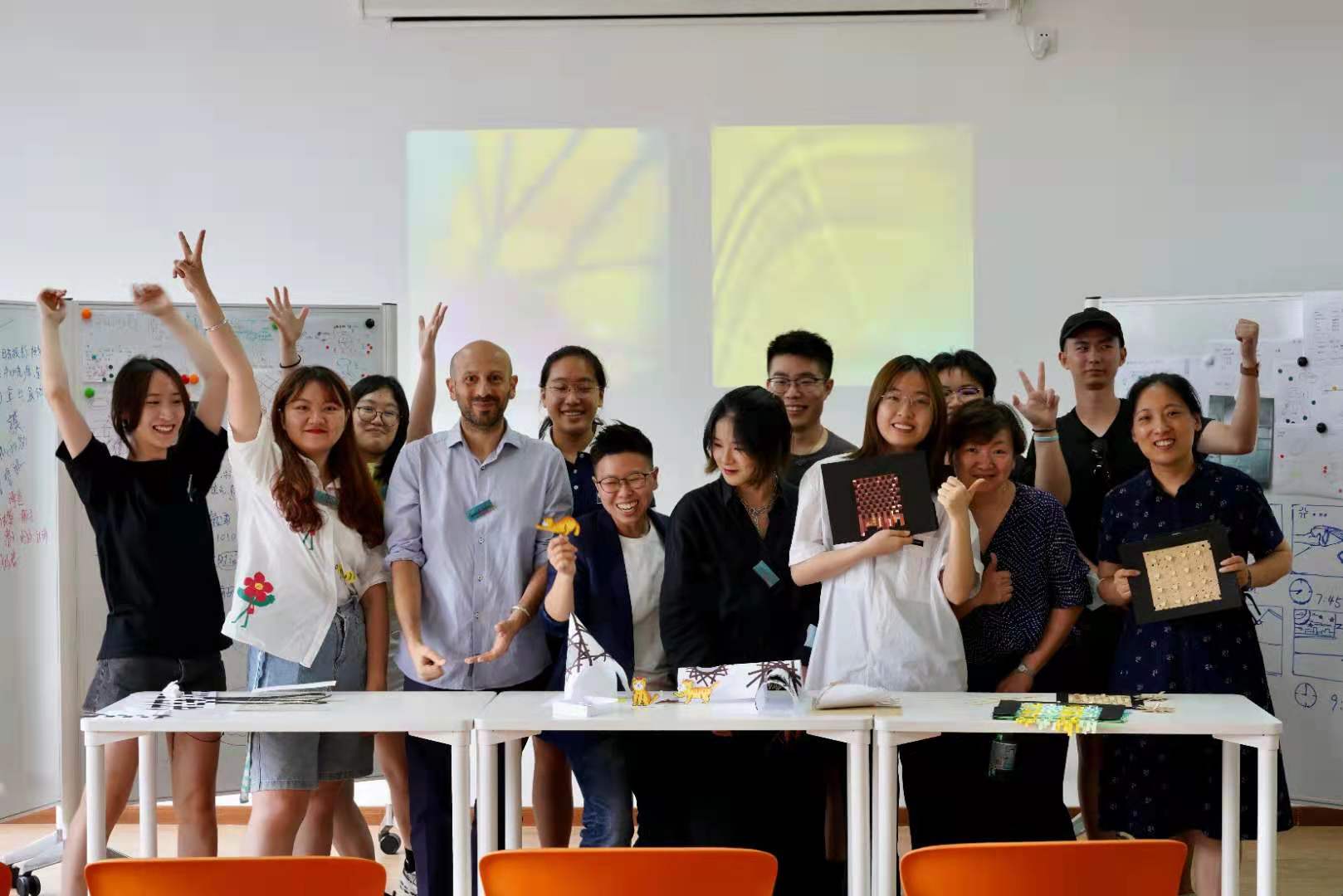 在为期4天的课程中,Carmelo和Monica 鼓励同学们积极思考非物质文化对个人的意义和价值;通过案例分析让大家了解非物质文化遗产传承的一般方法;通过组织访谈帮助同学们深入理解竹编工艺和它所面临的问题;利用图片、杂志、视频等视觉刺激物打开同学们的脑洞、启发他们的设计思路;运用PCEE工具从不同的维度分析和评价设计方案,并引导同学们在草模制作的过程中探索设计、发展方案。在课程的最后,我们再次邀请程丽老师来到工作坊,听取各项目组的作品发表并给予反馈。程丽老师对同学们4天的研究成果颇感兴趣,给予了高度的评价,表示将设计与竹编技艺结合从而提升竹编制品的艺术感和设计感是对该非物质文化遗产传承与保护最大的助力。