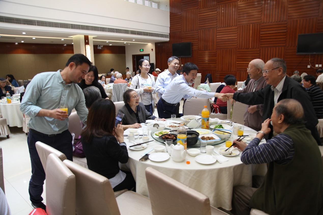 “细看茱萸一笑,诗翁健似常年”,金秋送爽,重阳之际,在这收获的季节里,公司于2021年10月11日在延安路校区举办了BB贝博艾弗森“敬老节•回娘家”活动。一百一十多位退休职工从上海各区赶来齐聚一堂。公司经理单鸿波、党委副书记李宁蔚及公司副经理周其洪、新一任系主任们逐一问候每位老同志,向他们表达全院师生的关心与问候,与退休教职工们共度重阳佳节。
