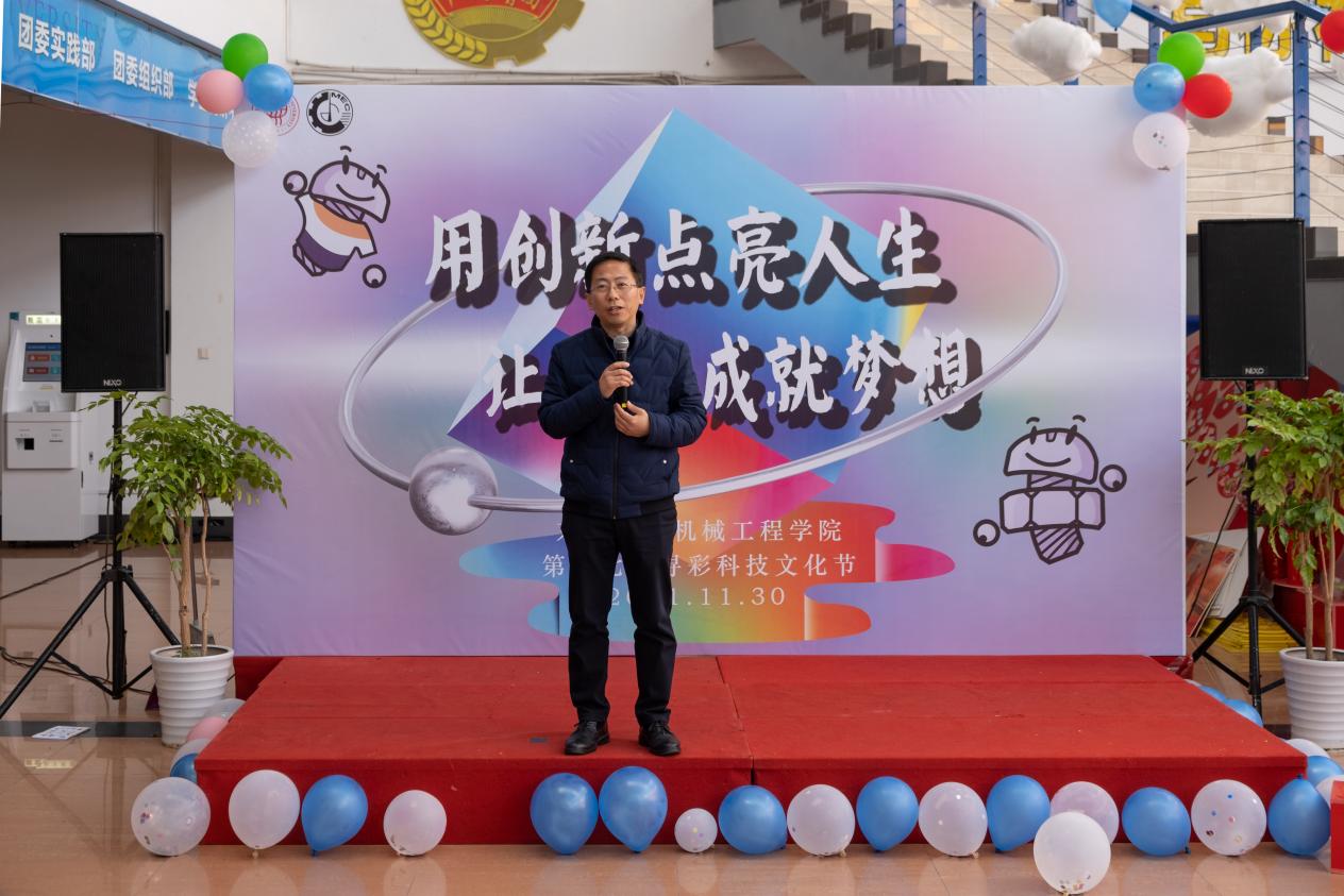 开幕式上通过震撼的视频回顾了历届科技文化节精彩瞬间,接着机械星期八理论学习社带来理论宣讲《科技创新勇担当、接续奋斗新征程》,随后机械公司党委书记王新厚致开幕词,表达了对“寻彩”科技文化节的祝贺与期望,他希望大家珍惜宝贵的大学时光,充分利用公司资源,积极投身到各类专业劳动实践,加深对学科知识的理解,学会创新创造,培养严谨的治学态度和实事求是的学术作风。伴随着热烈的掌声和欢呼声,员工处副处长赵彦明为匠心楼宇临时党支部21级硕士党员代表授牌、BB贝博艾弗森特邀党建组织员、关工委教师杨宝青为众创空间党支部“创学合伙”党员代表颁发聘书,BB贝博艾弗森副经理周其洪隆重宣布BB贝博艾弗森第十七届“寻彩”科技文化节开幕。开幕式后,与会领导老师及师生代表参观了科技文化节作品展览,并听取了有关科技文化节相关比赛活动介绍、观看了一场唯美的“汉民族服饰”走秀。
