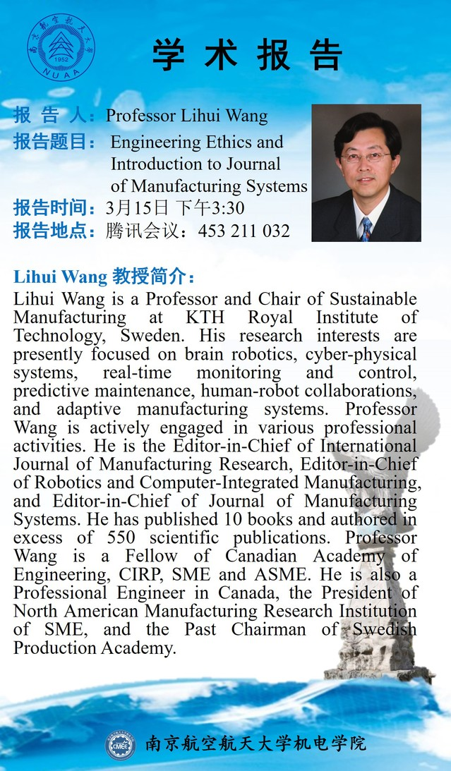 学术讲座:Engineering Ethics and Introduction to Journal of Manufacturing Systems