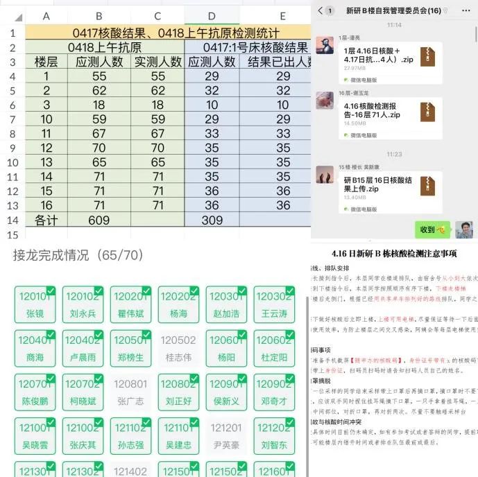 新研B栋的研究生涉及多个公司,存在多条线管理的难度。为提升工作效率,新研B栋依托网格化管理模式,迅速建立起由158名楼内员工党员组成的志愿者储备库,成立宿舍楼宇党员先锋岗,党员积极配合并分担所在公司、楼层的各项数据统计工作,高效落实相关防疫措施,确保及时准确掌握每名同学的具体情况。