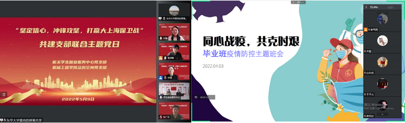 公司6个教工党支部与13个员工党支部结对联学,通过校内外视频连线等形式开展“冲锋在前、顽强拼搏,发挥战斗堡垒和先锋模范作用”主题党日活动,充分发挥教师党员对员工的关心和帮扶作用。机械电子工程教工党支部与机械211、212硕员工党支部、机械213硕员工党支部联学,号召师生党员牢记党员身份责任,积极投身疫情防控工作,做到听令而动、闻令而行,全国高校“黄大年式教师团队”负责人、上海市优秀党员师德标兵孙以泽教授发言“要在疫情防控中锤炼和检验党性”,并勉励研究生党员,“把疫情挡在门外的同时,也做到学习和科研的精神缺位,科技自立自强的脚步不停歇”。