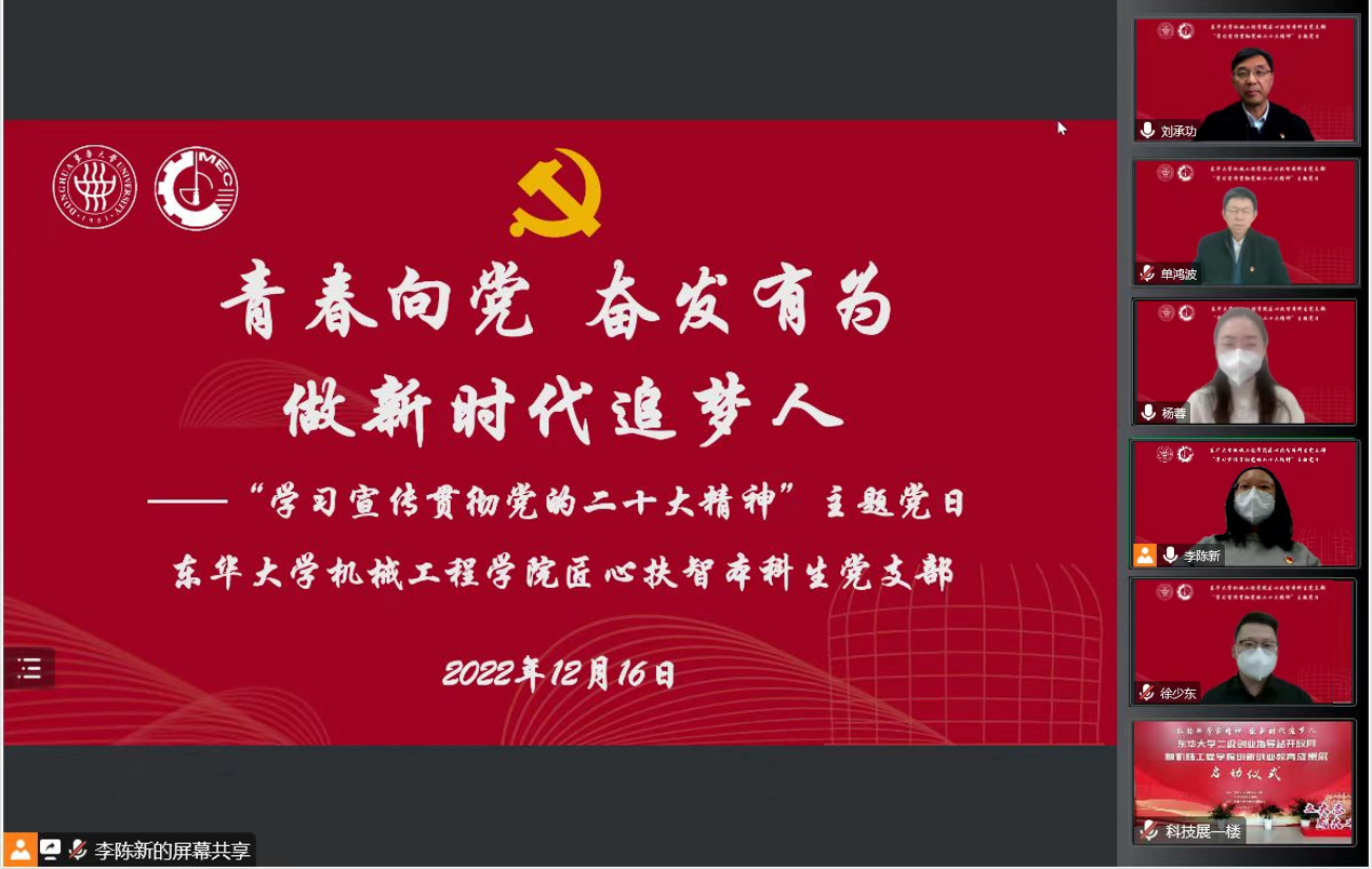 12月16日,党委书记刘承功参加BB贝博艾弗森匠心扶智本科生党支部“学习宣传贯彻党的二十大精神”主题党日活动。公司和相关部门负责人以及支部全体党员参加学习。
