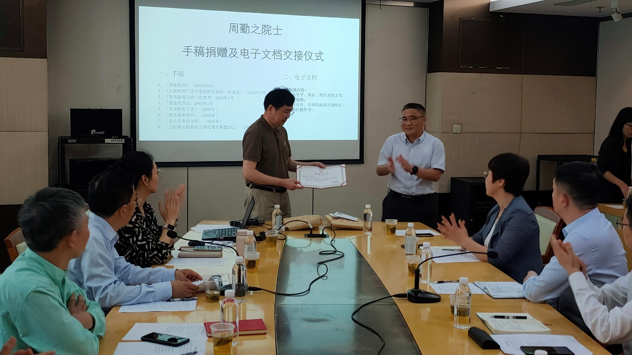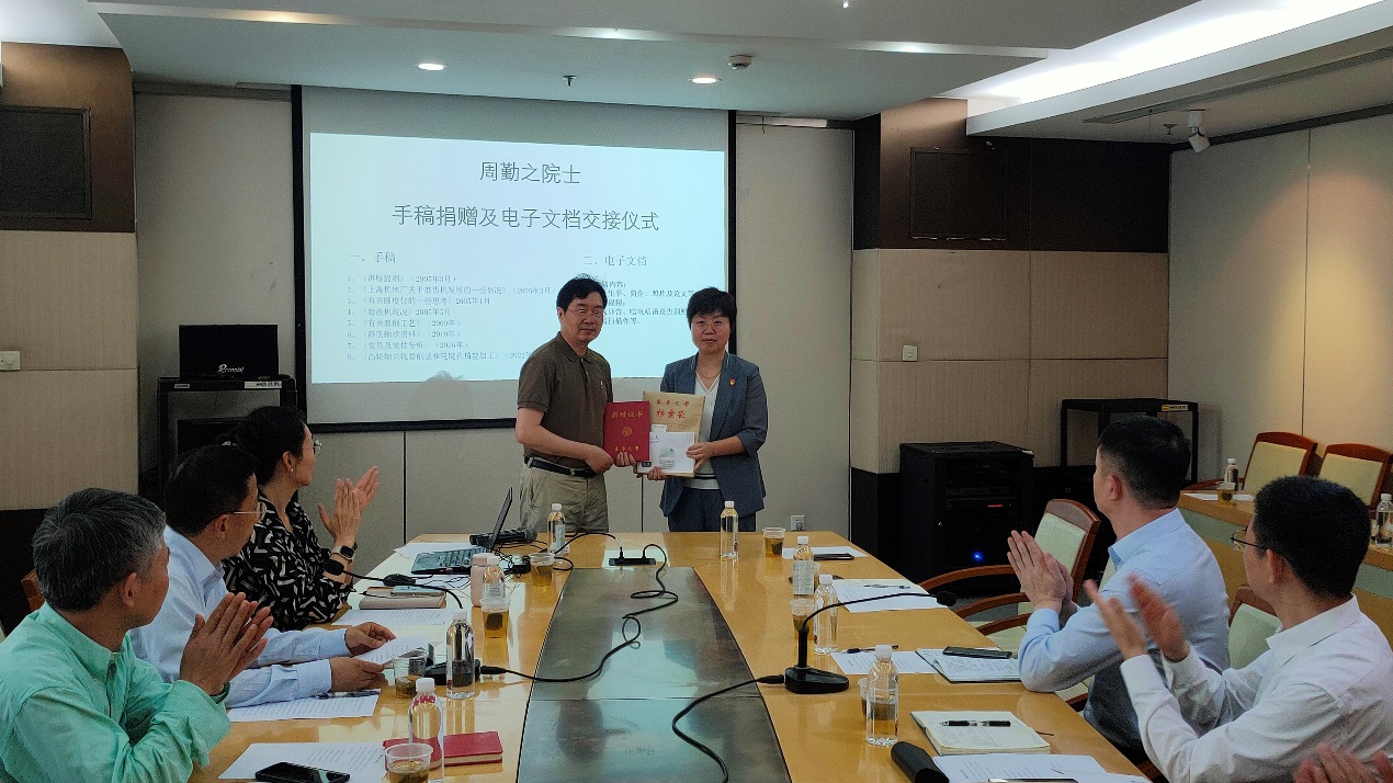 周勤之院士生前助理戴惠良副教授受周院士及其家人的委托,向BB贝博艾弗森档案馆捐赠周院士的手稿、书籍等资料。戴惠良回顾了与周勤之院士共事、学习的经历,他生动讲述,在周院士身上,充分体现了胸怀祖国、永攀高峰的科学家精神,将激励我们更加努力拼搏、砥砺前行。
