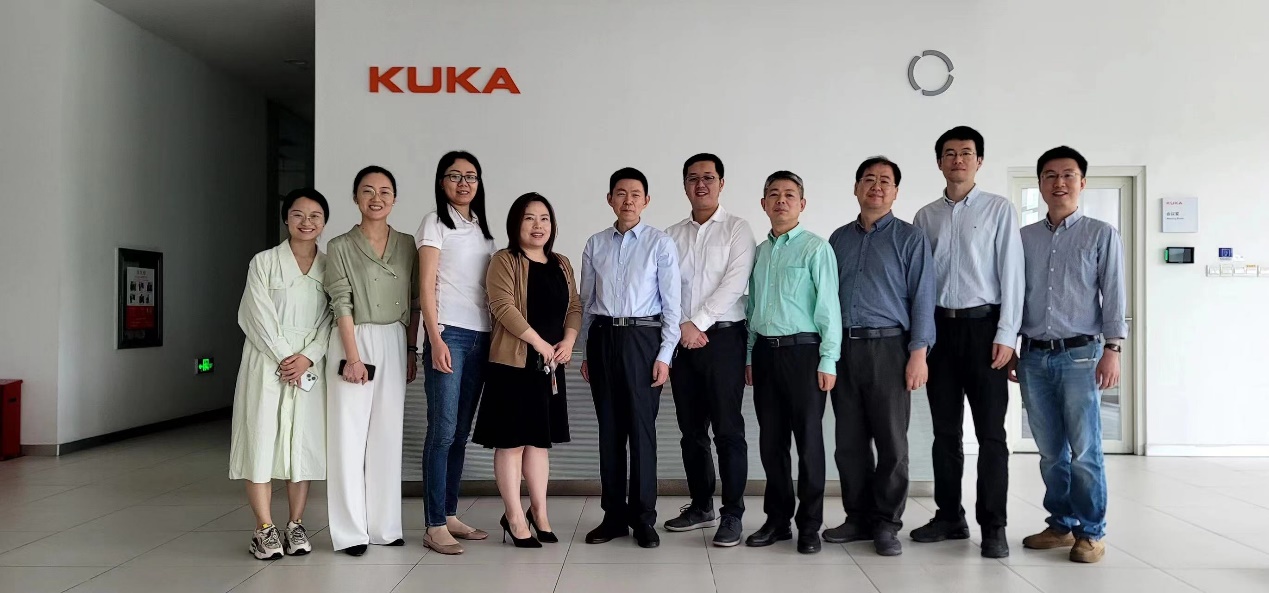 库卡柔性财务总监吴晓琼、营运人事总监赵敏健等陪同单鸿波一行走进生产车间,实地调研部件检测、控制柜安装调试、主机安装等技术工艺。
