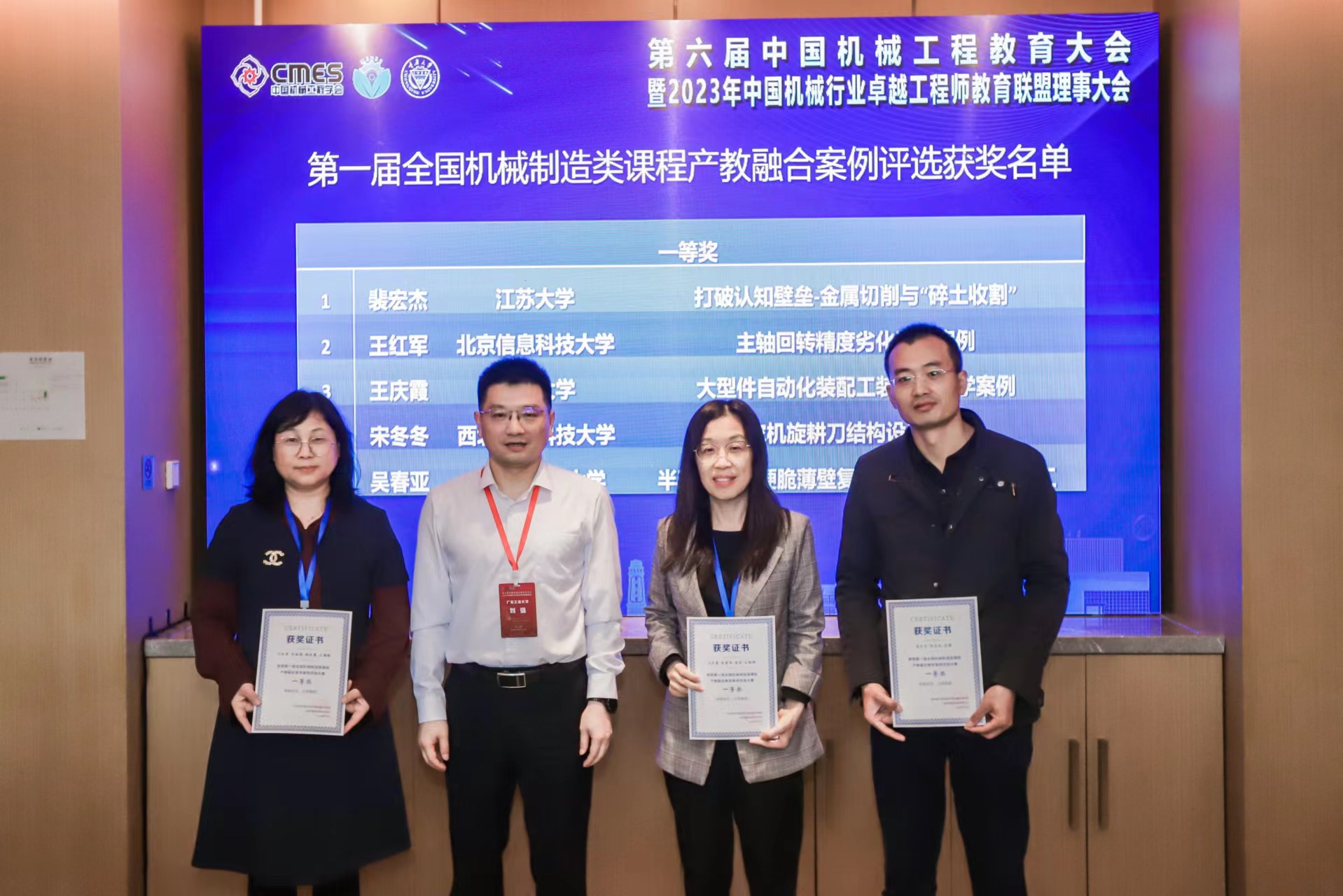 公司高度重视教师公司产品经验交流与学习,积极组织多位教师参与。在本次大会上,公司机械制造系吴重军老师经过前期的积极准备与教学比赛评审环节,在机械制造类课程青年教师竞赛中荣获一等奖。同时,王庆霞老师和吴重军老师分别荣获第一届全国机械制造类课程产教融合案例一等奖以及二等奖,是所有参赛单位唯一获得二项教学案例奖的申报单位。
