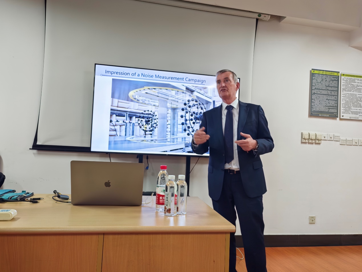 在这样的报告主旨下,Venner教授介绍了所在学科组的跨尺度研究,包括计算流体力学算法和设计、航空动力学和航空声学、流体和功能材料、旋转机械的流体力学以及界面薄层流动和润滑,生物医学流体力学和计算物理学。其中重点介绍了其团队在测量、预测和控制风电和飞机噪声方面所做的工作;对泡沫聚合物3D打印技术进行了介绍,指出泡沫性能对声学特性的影响;提到了微观尺度上薄膜润滑的发展趋势是更高负载、更小膜厚、新的(复合)材料、润滑方式的创新(如间歇性供油)、绿色生物基润滑剂、软润滑等,以期理解并预测材料拓扑与晶体学、微液滴润滑、材料的黏弹性行为等。