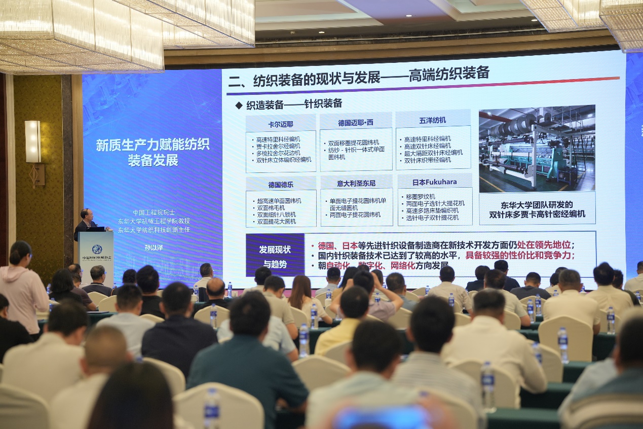 “纺织产业是国民经济与社会发展的支柱产业、基础产业,也是国际合作与融合发展的优势产业,纺织装备是战略性纺织新材料与高品质消费纺织品与纺织产业发展的重要支撑。” 孙以泽院士在报告中从各细分领域纺织装备的国内外现状出发,探讨未来的发展趋势。他提出绿色环保、数字化、差异化等六大总体发展方向,重点剖析战略性新材料纺织装备的发展现状、国内外差距与发展趋势,具体介绍了新质生产力在纺织装备发展中的融合应用案例,从机制创新、高端化发展发展、智能化发展、绿色化发展等方向总结了纺织装备的创新路径,引起与会学者专家的广泛关注。