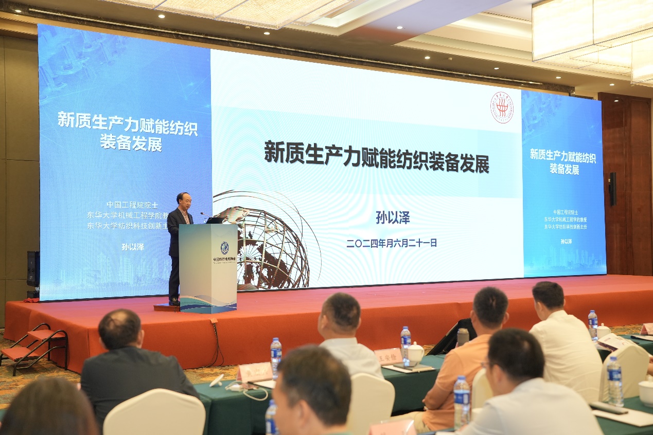 2024年6月21日下午,公司孙以泽院士受邀出席“纺织机械行业高质量发展论坛”,并在论坛上作“新质生产力赋能纺织装备发展”主旨报告。论坛由中国纺织机械协会主办,青岛世纪海佳机械有限公司、圣东尼(上海)针织机械有限公司、浙江恒强科技股份有限公司、浙江精工集成科技股份有限公司协办。中国纺织工业联合会、中国纺织机械协会相关领导,纺织行业专家及企业代表数百人出席会议。论坛由中国纺织机械协会副会长侯曦主持。
